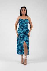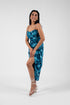 This backless bodycon dress, with spaghetti straps and an asymmetrical hemline, offers a striking blend of sensuality and modern edge. The form-fitting design highlights your silhouette, while the asymmetry adds dynamic flair.